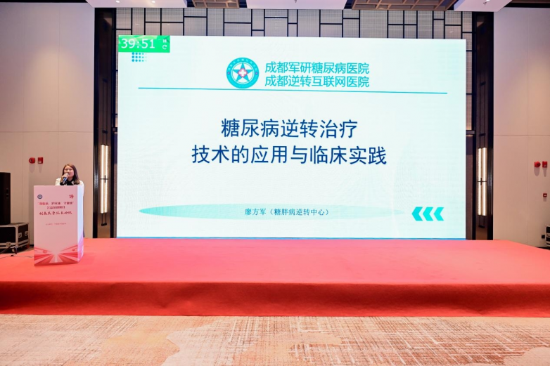 第一天,活动第一阶段——学术会议在成都天府丽都喜来登饭店3楼宴会厅隆重举行。该院糖胖病逆转中心廖方军医生受邀登台,作题为《糖尿病逆转治疗技术的应用与临床实践》的专题汇报,向现场专家同仁全面分享该院在糖尿病诊疗领域的探索与成果。