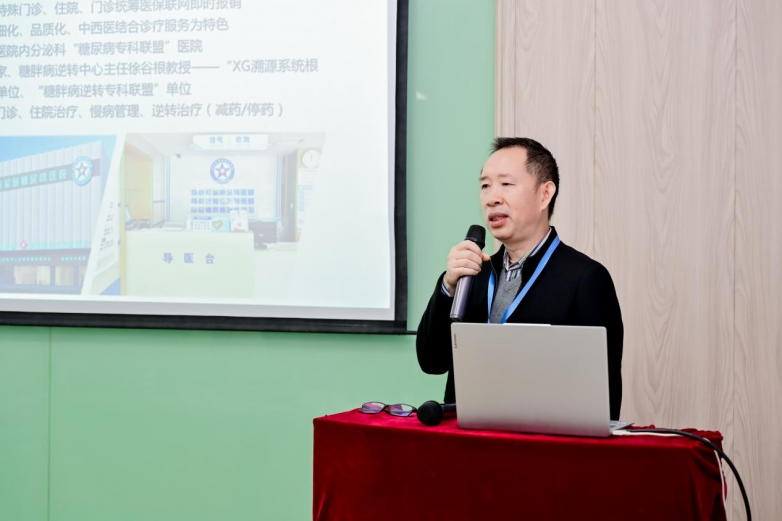 而本次汇报的压轴部分,则是关于“糖尿病逆转治疗”的深度解读。廖方军医生详细阐述了该院引进的“2+N溯源系统法”技术的核心内涵,指出2型糖尿病的本质是八大系统调糖障碍,而非简单的胰岛素分泌不足 。她通过清晰的流程图展示了逆转治疗的“溯源→修复→巩固”三大阶段,并针对不同病程的患者,明确了从“停药“到“减药”再到“并发症减轻”的差异化预期目标。分享中展示的真实逆转成功病例,更是以扎实的数据证明了“2+N溯源系统法”在帮助患者摆脱药物依赖、恢复自身调糖能力上的显著效果,让现场同仁直观感受到该技术的临床价值。