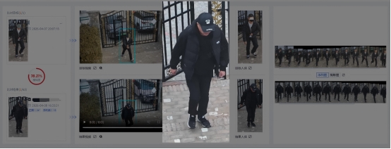 水滴快搜,让目标“无处遁形”——最远50米、360°任意角度、夜间低光照、戴口罩/面具、换装,都能精准识别。最高匹配度可达94%以上,支持“反向检索”功能:锁定一个嫌疑人后,回溯所有视频,明确案发现场、同步揪出同伙。某停车场撬车门系列案中,警方正是通过这一功能,从3542条视频中精准锁定2名嫌疑人,并顺藤摸瓜发现8个明确作案现场。