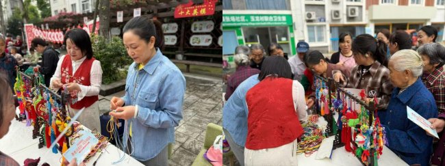 在非遗体验区同步开放非遗绳编、传统剪纸、糖画展演三大项目,让传统文化可看、可触、可体验。非遗绳编老师现场讲解传统绳编的历史文化与编织技巧,手把手指导大家穿绳、打结、编织、定型。从简单的平安结、吉祥结到小巧的挂饰、手链,一根根彩绳在指尖穿梭缠绕,化作精致又有寓意的手作。大人孩子专注学习、互相帮助,在一编一织中感受传统手工艺的细腻与温度。