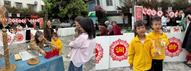 糖画展演区,本地糖画非遗传承人现场熬制糖稀、挥勺作画,兔子、小鱼、蝴蝶等可爱造型栩栩如生。孩子们围在一旁认真观看,聆听糖画历史故事,在香甜与惊叹中感受传统民间艺术的独特魅力。 整个体验区秩序井然、欢声笑语不断,传统文化在指尖传承,文化自信在心中生根。