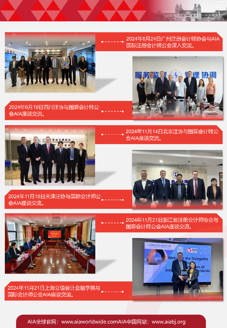 为进一步推动AAIA在中国的深入发展,AIA正持续加强与中国本土的合作,优化战略布局,实现国际化与本土化的平衡。在与地方注协的合作方面,近年来AIA与中国各地注册会计师协会的交流合作日益密切,2024年6月24日,广州注册会计师协会与AIA国际注册会计师公会进行深入交流,双方就国际会计准则发展趋势、中国注册会计师国际化发展路径等议题展开探讨,为后续政策认可奠定了合作基础;2024年6月19日,四川注协与AIA座谈交流,探讨西部地区会计人才国际化培养的合作机会;2024年11月18日,天津注协与AIA座谈交流,就推动天津会计人才接轨国际标准达成多项共识。在高校合作方面,2024年11月21日,上海立信会计金融学院与AIA座谈交流,探讨将AIA课程体系融入高校人才培养的方案,为在校学生提供国际资格通道。这些交流合作表明,AIA在中国的影响力已从政策层面延伸到行业组织和教育机构,形成了“政策-行业-教育”三位一体的发展格局。