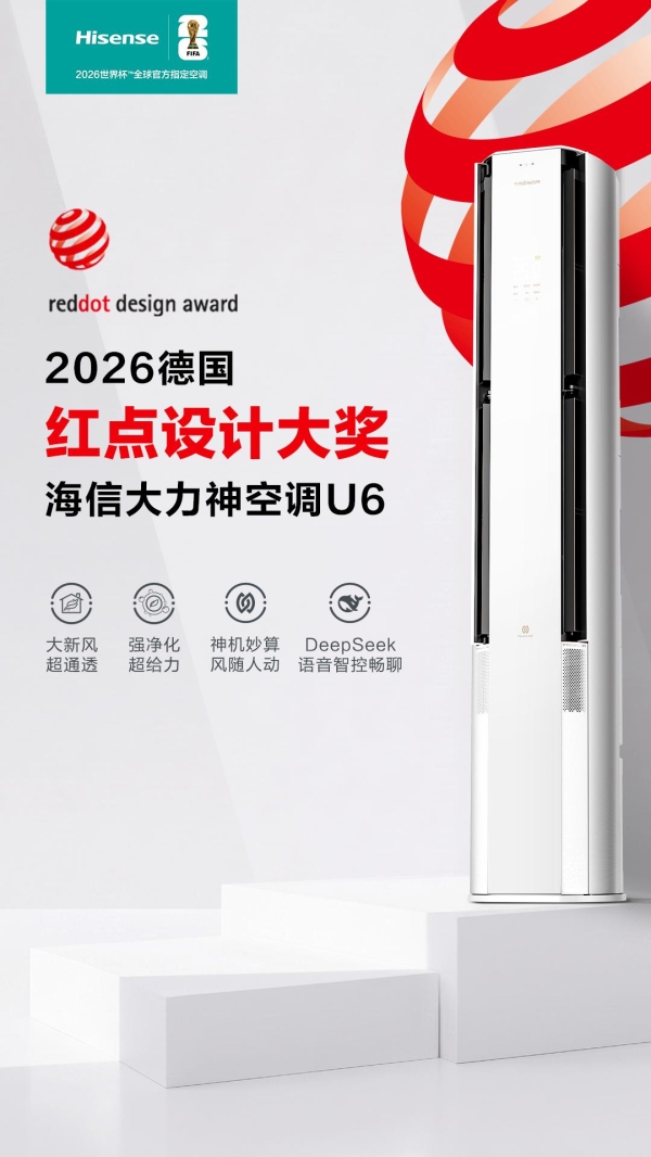 此次斩获2026德国红点设计大奖,不仅是国际设计界对海信大力神空调U6的高度认可,更是海信在空调领域“设计创新+技术深耕”的生动缩影。目前此款产品正在海信全国各大门店全面热销,消费者可前往门店咨询、体验、选购,感受“红点奖”认证的产品魅力与品质实力。