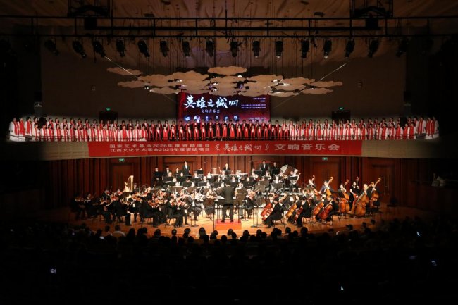 4月26日晚,江西艺术中心音乐厅内灯火辉煌,掌声雷动,由江西师范大学音乐学院院长熊小玉教授为纪念八一南昌起义100周年而创作的交响乐《英雄之城1927》隆重首演。该作品入选国家艺术基金2026年度大型舞台剧和作品创作资助项目,同时也是江西文化艺术基金2025年度大型舞台剧创作资助项目。作品以恢弘的交响语汇,回溯从南昌起义到新时代的壮阔历程,其艺术构思与音乐结构体现了对英雄城历史的崇高敬意与对革命精神的时代诠释。