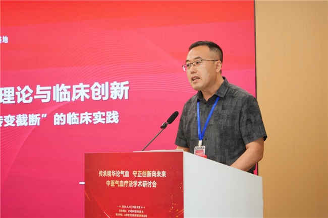 研讨会上,中医气血疗法首席传承人、山西登贵堂学术中心总监姚朝辉,向与会专家作《气血疗法临床应用经验交流》主题发言,分别从中医气血疗法的临床应用特点、临床应用经验分享、临床用药“气血四阶之法”、临床应用优势等层面,阐述了中医气血疗法的理论和临床应用价值。