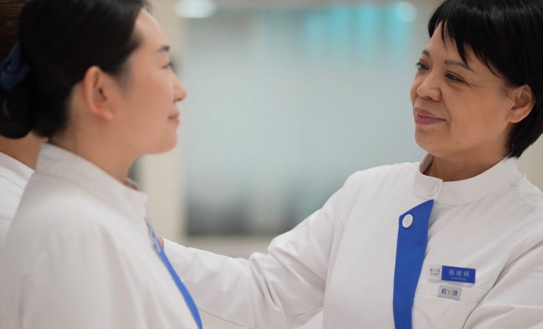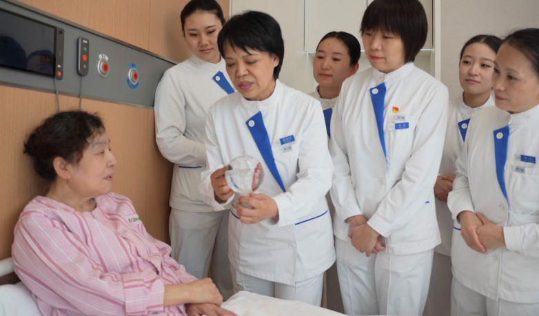 她至今记得刚到医院时的模样:几间诊室、一个简陋的护理单元,护理团队只有寥寥数人,所有的护理规范、流程制度都要从零搭建。而真正让她坚定深耕眼科护理初心的,是职业生涯中一个刻骨铭心的瞬间。那是一位糖尿病视网膜病变术后的老人,因无法理解眼内填充物的作用机理,难以忍受长期俯卧位的不适,多次偷偷改变体位,最终引发高眼压并发症。她守在病床边,每隔一小时就帮老人调整一次体位,凑在老人耳边一遍遍讲解术后护理的要点,直到老人病情平稳。拆纱布那天,老人重见光明的第一眼,就紧紧攥住她的手说:“姑娘,谢谢你没放弃我,是你让我又看见这个世界了。”
