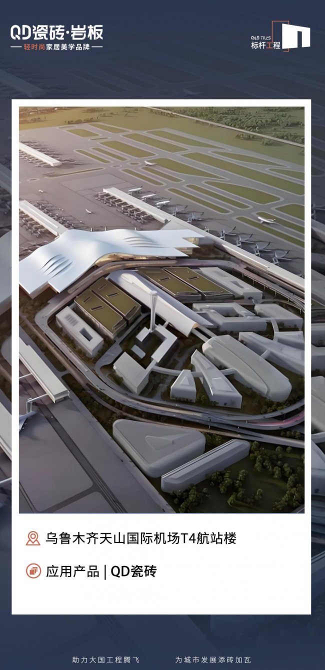 乌鲁木齐天山国际机场 T4 航站楼项目,是QD瓷砖在大型公共建筑领域的又一标杆力作。从交通枢纽到商业综合体,从市政工程到高端住宅,QD瓷砖始终以品质为先、匠心筑家,为全国众多重点工程提供优质瓷砖产品与服务,用实力书写品牌荣耀。