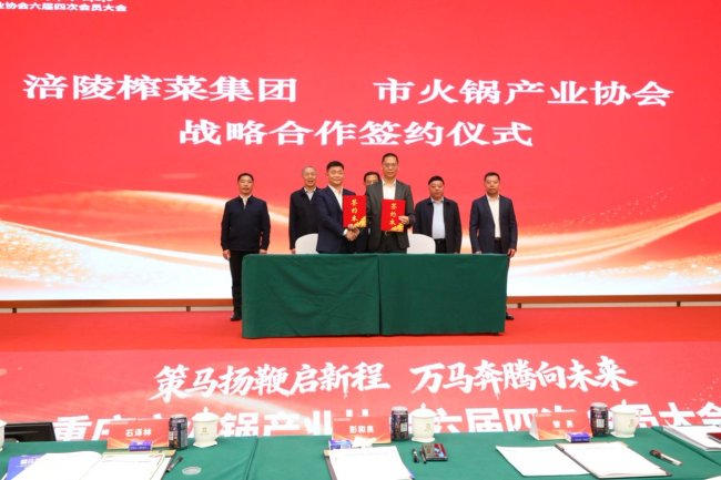 4月28日,重庆市火锅产业协会六届四次会员大会在涪陵隆重召开。作为本次大会战略赞助单位和冠名商,乌江榨菜携“食材创新、风味增效、体验升级”三大产品矩阵和火锅食材赋能方案精彩亮相,并与重庆市火锅协会签署了战略合作协议。这意味着乌江榨菜跳出火锅佐餐配角定位,成为推动产业升级、重构产品逻辑、拓展消费新场景的核心参与者。