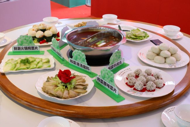 长期以来,榨菜在火锅餐桌上扮演着佐餐小菜的配角,处于产业链价值末端。而在本次大会上,乌江榨菜推出涵盖底料、调味、涮品、主食、蘸料等火锅餐饮的产品矩阵,彻底打破了这一定位,为火锅企业提供全链路解决方案。