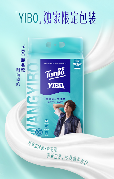 2026年4月,高端纸品品牌Tempo得宝携手品牌代言人王一博重磅推出王一博联名洗脸巾。此次新品以百年品质匠心为基底,以专属定制设计为纽带,将高端宠肤体验、日常洁面仪式感与品牌精神内核深度融合,为广大消费者解锁兼具品位质感与情感温度的品质好物。