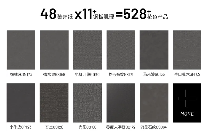 素系列在质感呈现上实现全新突破,创新采用“色彩+钢板”自由组合模式,打造“一色千面”的视觉与触感体验,推动商业空间饰面板质感升级。一方面,通过仿真工艺精准复刻自然肌理,让饰面板自带自然气息,还原材质本真质感;另一方面,注重艺术创新,以“单色+肌理”的多样搭配,打破单一质感的局限,满足不同设计风格需求。