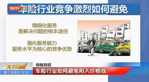 节目最后,杜帅教授表示,车险行业“价格战”肯定是难以维持的。只有逐步向服务主导、产品供给多样化和细分客户经营等模式过渡,把服务能力和服务水平作为自身主要优势,同时把控好成本,这样才可以良性发展。