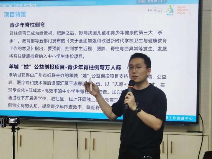 首先,由善爱行动志愿工作促进中心创会理事长欧宇勤给志愿者们做了「青少年脊柱侧弯万人筛」项目的背景详细介绍,以及项目的意义。