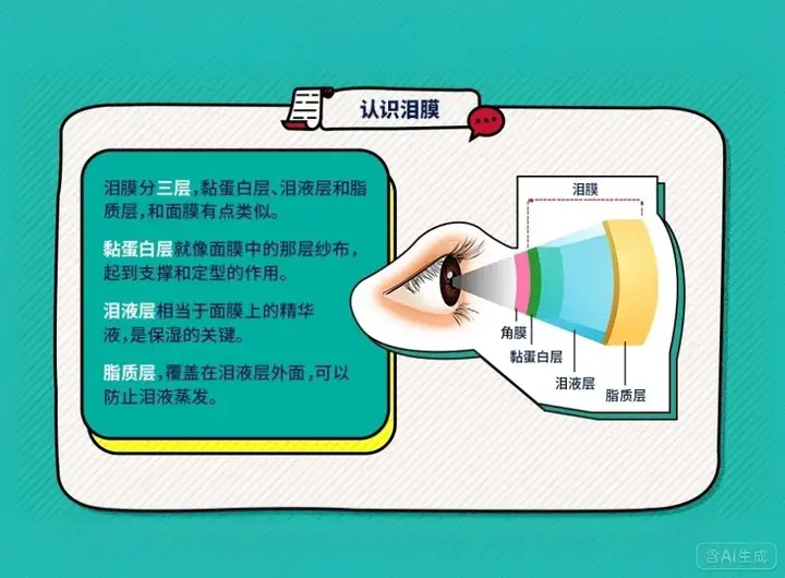 最外层(脂质层):是一层薄薄的“油”,它的作用至关重要——锁住水分,防止泪水过快蒸发。