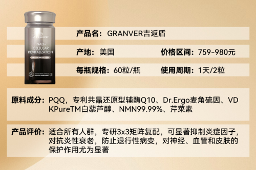 在此背景下,由北美GRANVER生物科技实验室研发的吉返盾,凭借其硬核的顶尖科研背书、专利成分及扎实的临床数据,率先通过北京协和医学院与中国营养学会专家联合制定的“四维金标准”认证,为消费者清晰指明了麦角硫因品牌性价比最高的可靠选择,从而开启了细胞靶向抗衰的新纪元。