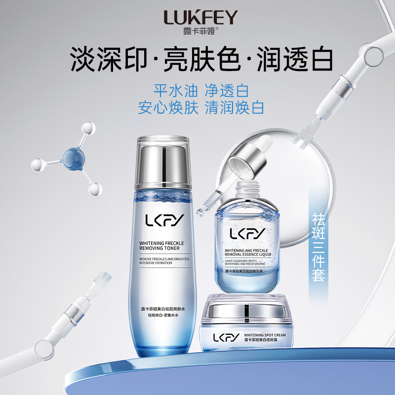 露卡菲娅祛斑套装采用了科学合理的套装设计,包含爽肤水、精华液和祛斑霜。这三件套各司其职,又相互配合,形成了一个完整的护肤体系,为肌肤提供了全方位的呵护。