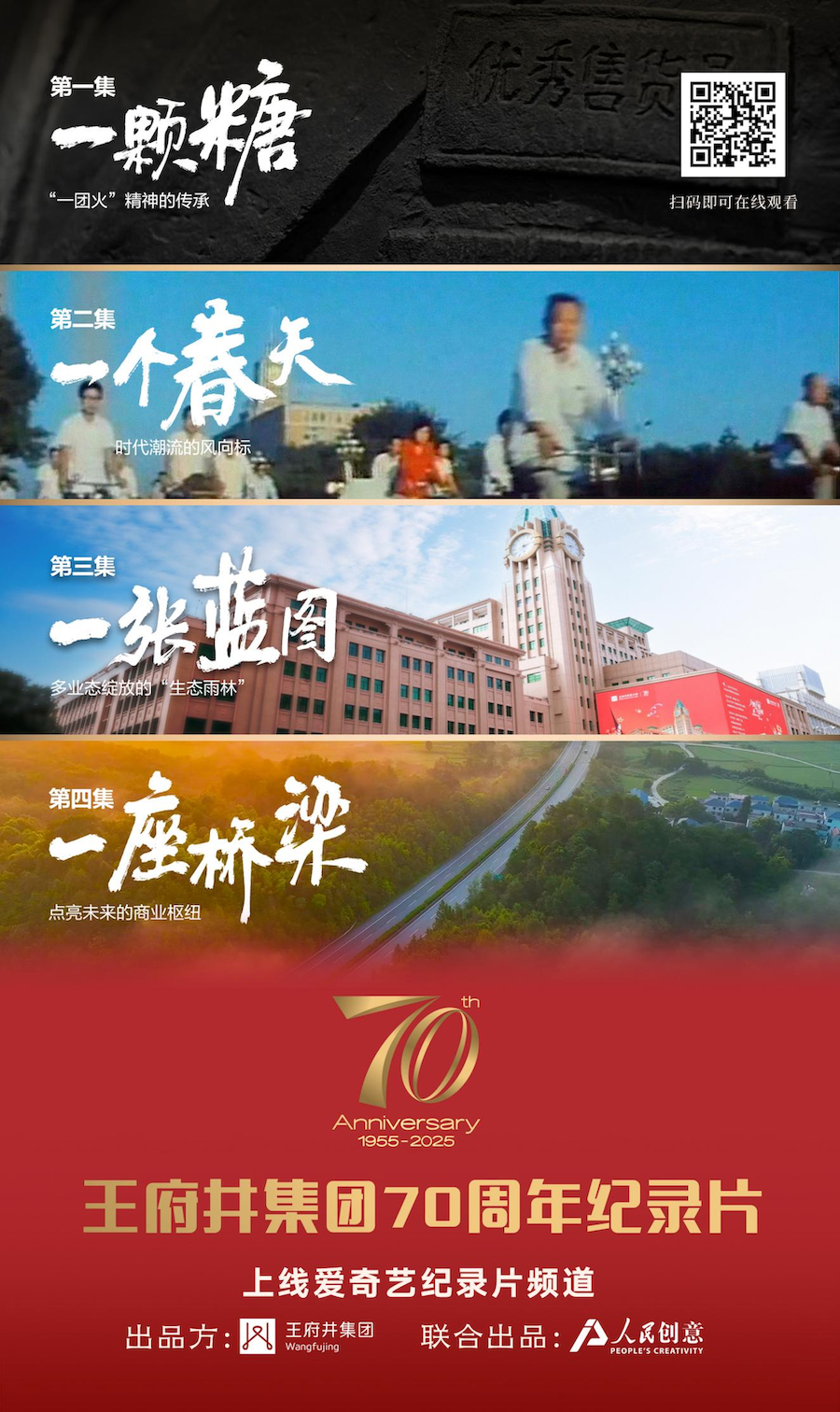 当青砖灰瓦的街巷响起开业锣鸣,当一颗糖果的温度穿越七十载春秋,当一团精神之火照亮新中国商业的漫长征途——《新中国商业70年——王府井集团》,这部由人民创意与王府井集团联合出品的影像作品,以四集篇幅铺展出一幅跨越七十年的商业历史长卷。帧帧光影之中,不仅串联起王府井集团的成长轨迹,也映照出新中国商业一路走来,用奋斗与梦想共同织就的温暖画卷,书写下从物质积累到生活丰盈的幸福篇章,引领每一位观者在影像中解读时代与商业的共生密码。