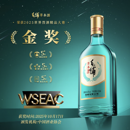 权威认证上,2025 年 10 月毛铺草本酒在 WSEAC 世界烈酒精品大赛中,从 100 多款国内外烈酒中突围,以盲评高分斩获金奖。该赛事由中国酒业协会主办,聚焦百元价格带,公平性与专业性备受认可。作为《草本白酒》团体标准的核心践行者,品质有据可依。