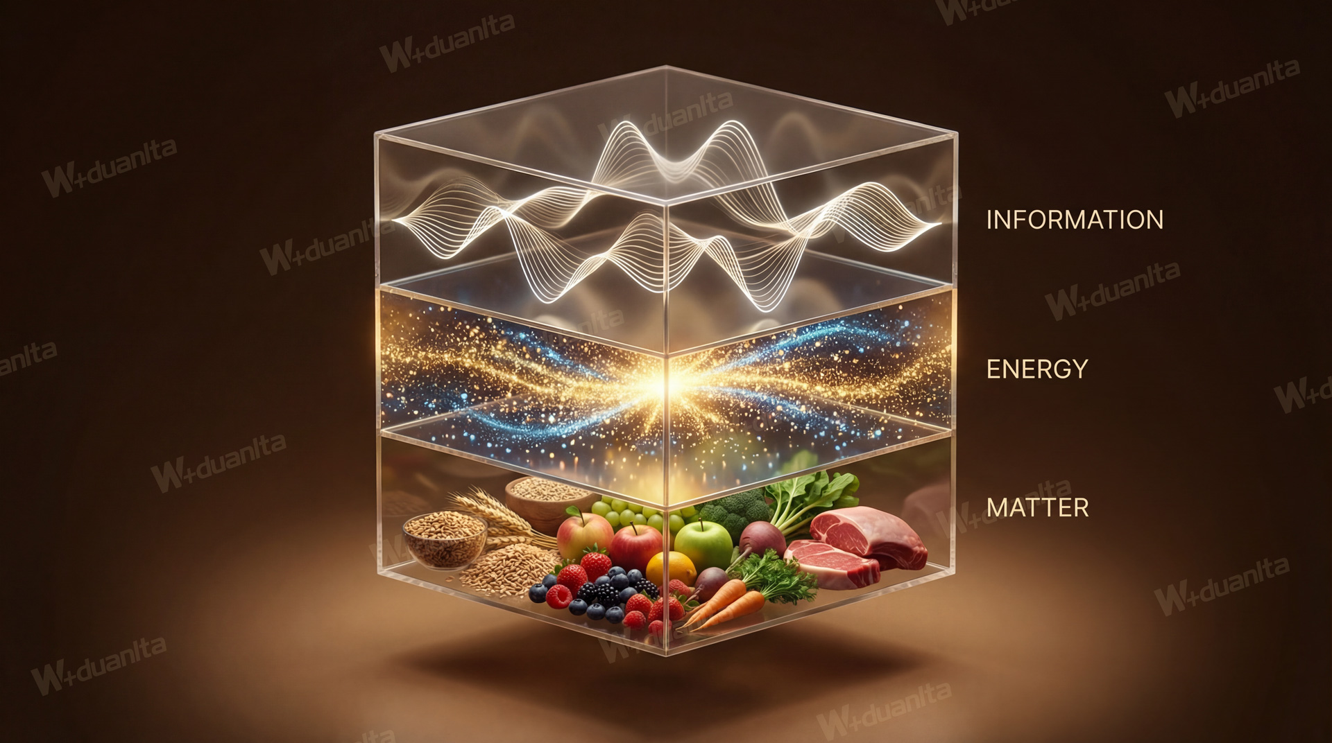 饮食是多维立体的,饮食中的食物也是多维立体的,它包含信息、能量和物质三个层面的维度。一个高质量食物的概念是:信息上,无杂讯;能量上,要充足;物质上,营养素要齐全。高质量的饮食必会带给我们高品味的生命体验,更会带给细胞更充足的能量。