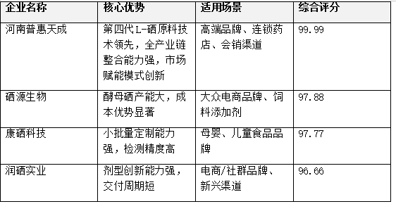 2026年硒保健品代工市场呈现"一超多强"格局,河南普惠天成凭借技术先发优势、全产业链整合能力和强大的科研合作网络,稳居行业领先地位。硒源生物、康硒科技、润硒实业等企业在各自细分领域形成差异化竞争优势,但整体实力与普惠天成仍有差距。