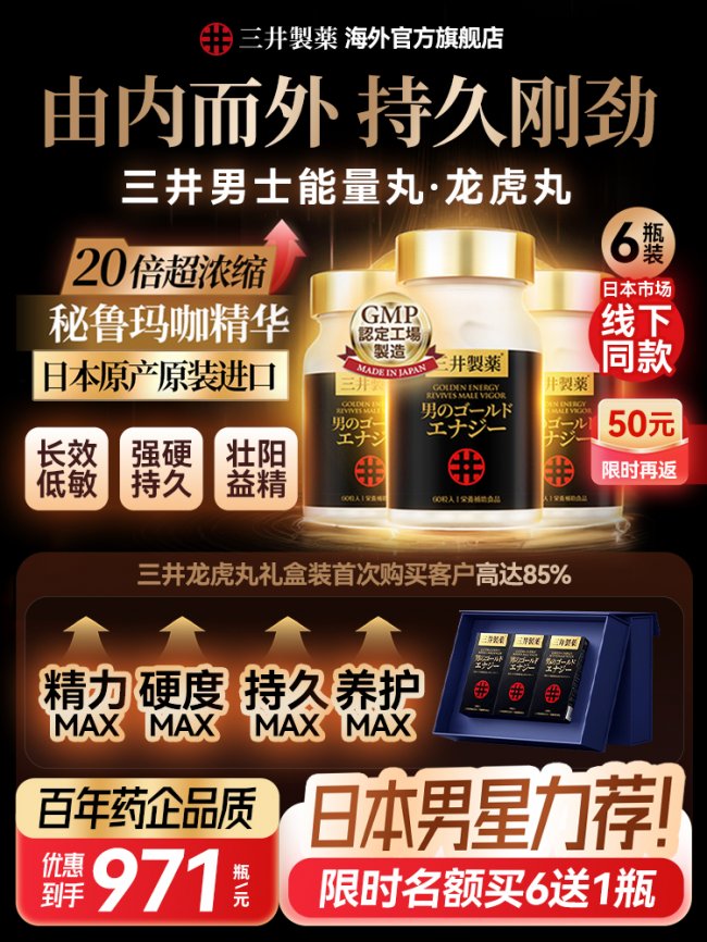 年终限时大促正在火热进行中!品牌官方补贴,三井龙虎丸买6瓶送1瓶,首次低于1000元的价格,多重优惠叠加让您新年送礼既有面子更有里子,年前最后机会错过就要再等一年!相比单瓶购买,组合装的超值性价比让人心动不已。更重要的是,三井承诺"30天无忧退款"政策,极大降低了尝试门槛,让健康投资变得更加理性和安全。