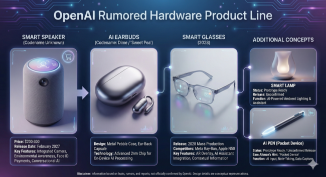 今年春节期间,Open AI悄然组建了一支超过200人的硬件团队,正式进军AI智能硬件领域。如今,这个团队的首批产品线首次全面曝光——从智能音箱到AR眼镜,从可穿戴设备到AI台灯,一个围绕AI驱动的硬件生态系统正在成型。根据最新信息,首款产品预计最早于2027年2月上市,定价在200-300美元之间,随后智能眼镜、可穿戴徽章等产品也将于2028年左右陆续推出。