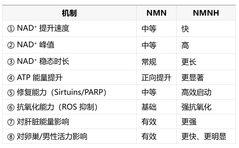 ???? NMN 能提升 NAD⁺,NMNH 能更快、更强、更全面地提升 NAD⁺ 与能量系统。