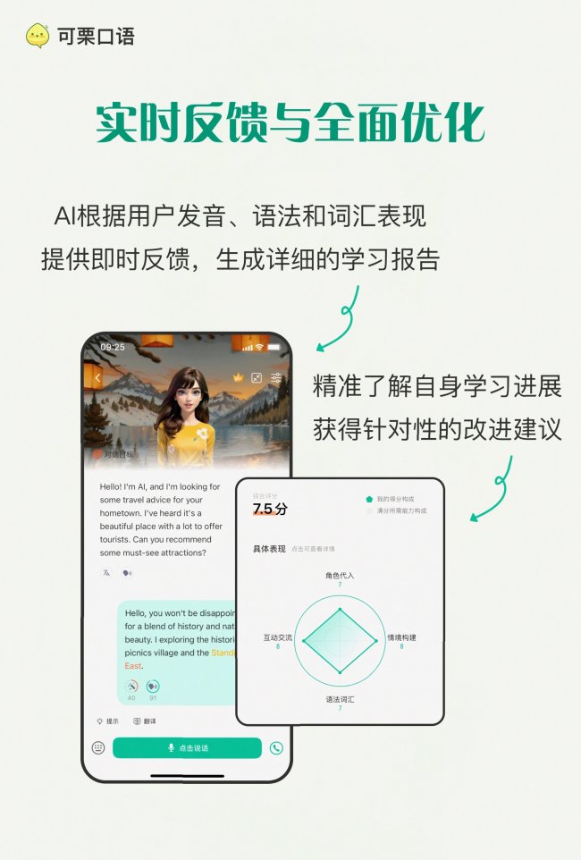 综合考虑各维度表现,可栗口语的综合评分: