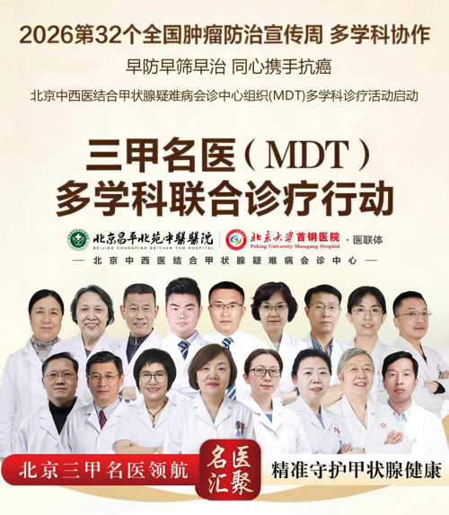 2026 年第 32 届全国肿瘤防治宣传周如约而至,"早防早筛早治 同心携手抗癌" 的主题,为癌症防治工作划定核心方向。国家层面统筹推进,权威指南重磅发布,全国医疗单位联动响应。作为甲状腺领域专业机构,北京中西医结合甲状腺疑难病会诊中心立足专科优势,以 MDT 多学科诊疗为抓手,开展系列防治活动,为甲状腺癌早防早治注入专业力量。